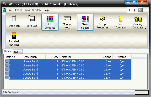 - With the Individual Quantities box ticked as above, your Job Contents is displayed as follows, if you accept multiple quantities of an item.