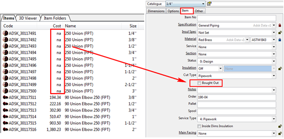 If you notice that "na" displays where there should be a valid cost value, check the item (Item tab), and make sure the Bought Out option has been selected.