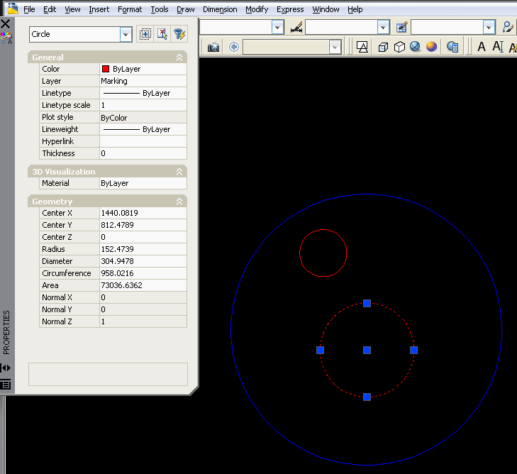 - Press the Esc key, then select a different object and change its layer to Marking. Notice how the objects change color to match the different layer colors.