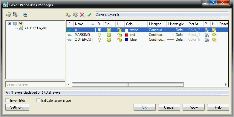 The drawing containing the parts to be processed is often complex and contains many layers. The parts to be processed should therefore be placed on nominated layers.