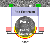 RodsCosted per meter in place of the Bearer in which the length is calculated for the circumference plus the Rod Extension , indicated by the Pale Blue region.