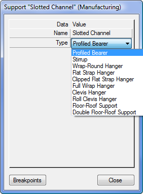 There are many support types available for configuration. The support type that is selected impacts the calculations for quantities and lengths of the assigned materials.