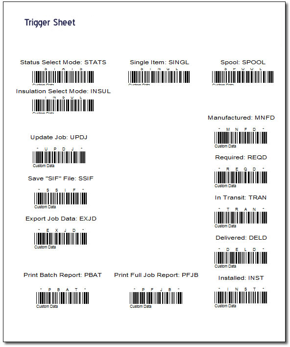The Trigger Sheet has bar codes for each of the trigger events setup within Tracker, and would act as the menu for changing statuses, executing prints, changing between insulation and status mode, etc.
