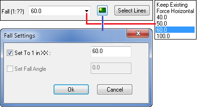 Fall (1:??): Determines the Fall globally applied within the public health system run. Alternatively, individual Design Lines contained within the system can be configured individually with the Select Lines command.