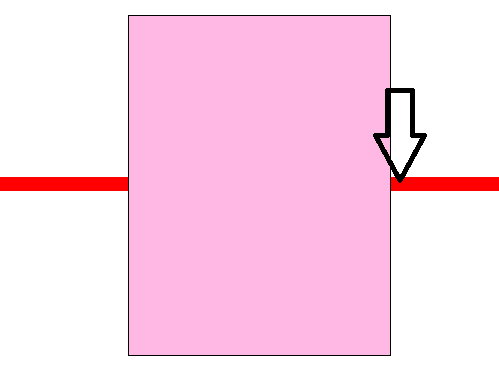 The following conceptual diagram represents a pinch point location on a Design Line in plan view. The pinch point position is set on the Design Line on the upstream edge of the limiting object; for example, in some cases the limiting object may be a soffit.