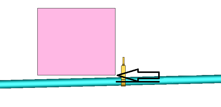 The following conceptual diagram represents an end view, showing the pinch point elevation. Note that in reality, the elevation should allow for the pipe radius.