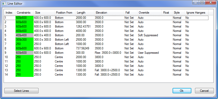 Edit menu option, the following dialog appears detailing the active Design Lines content.