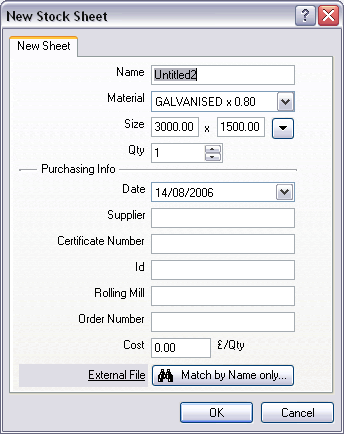 - The External File field allows you to attach a document which is associated to the sheet. This can be Word document of PDF. Click the Match by Name only button to search for the desired file, or the click the External File text link to view the file in a new window.