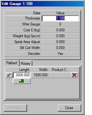 Set up the Straight options similar to what is shown below to allow the decoiler to use the two coils widths of 1500 and 1850 for standard straights. These will be made on Line 1. Straights that do match the two standard lengths will be made on Line 2.