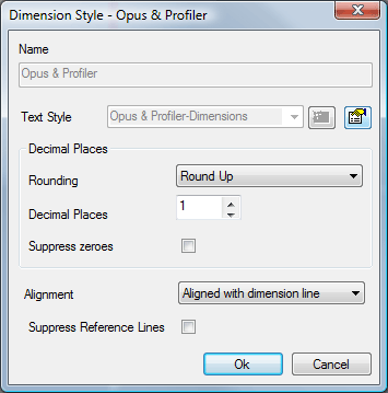 Alignment: The Alignment dialog is not used within Opus. The Suppress Reference Lines option removes the Reference Lines used in the Dimension Label.