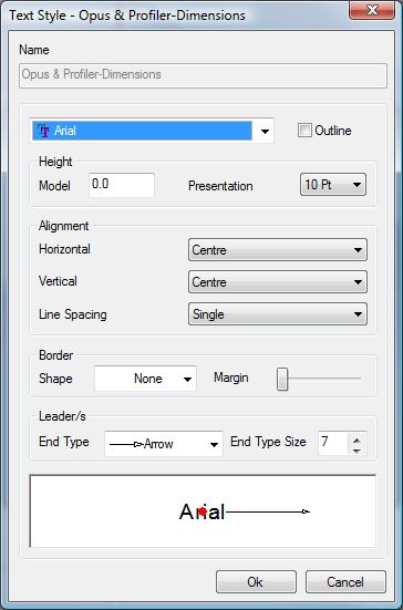 Height: The Height dialog sets the size of the font in relation to the model. The Presentation font is not used in Opus.