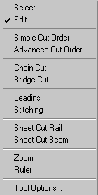 Tool Options: The options available here will depend on which mode the operations menu is in. For example, if the Bridge or Chain Cutting is selected, the tool options will allow the user to set the lead in style. If Stitching is selected, the tool options will allow the user to set the length of the stitches.
