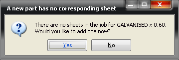 This dialog displays each time a new material and gauge combination is encountered.