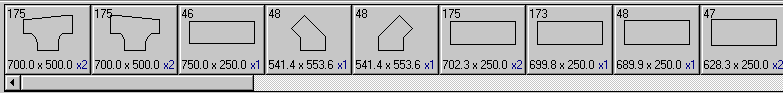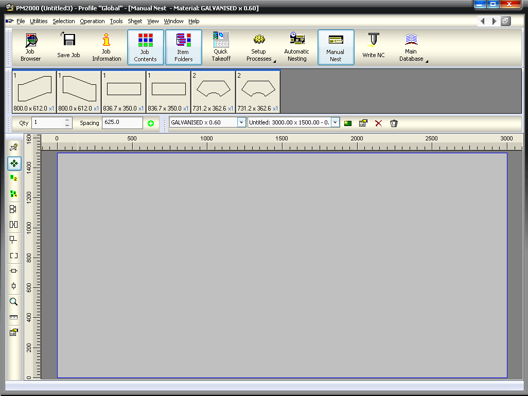 Parts: The top section of the Manual Nest dialog displays the parts that are to be nested on the material and gauge displayed in the sheet control centre.