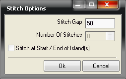 : This option can be used to stitch parts to the sheet on a part by part basis. To perform this operation, click and drag a selection box around parts to be auto stitched, then right click to display the dialog.