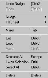 Selection: The selection menu includes certain operations that can also be accessed using the keyboard. The keyboard shortcuts are listed next to the function name. The standard Windows Cut, Copy and Paste commands are available.
