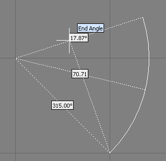 - An indicator for the third point is then displayed, tracing out the final path of the arc with the movements of the mouse. Click to place the end of the arc, or enter an angle.