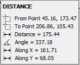 The DISTANCE dialog contains the following information