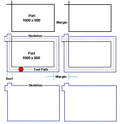 Kerf is the allowance required to compensate for the tool width. With thermal cutting tools, the Kerf Value is normally material and gauge dependent. For example, if the Kerf Value = 1.0, and you need a part 100 x 100, then the cutting program compensates and cuts along a center line at 100.5 x 100.5. When cutting a 100 x 100 hole, the center line would be 99.5 x 99.5.