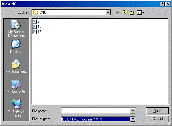 - Click on the relevant NC file and it will then appear in the File Name field. Then click the Open button to view the NC file.