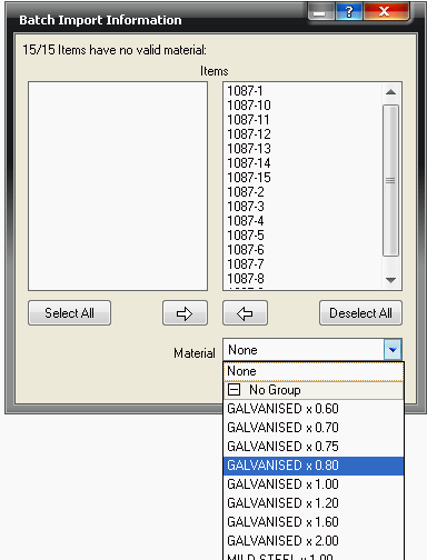 - If the separate Items box is ticked then the Fabrication products will inform you that the parts all have the same name.