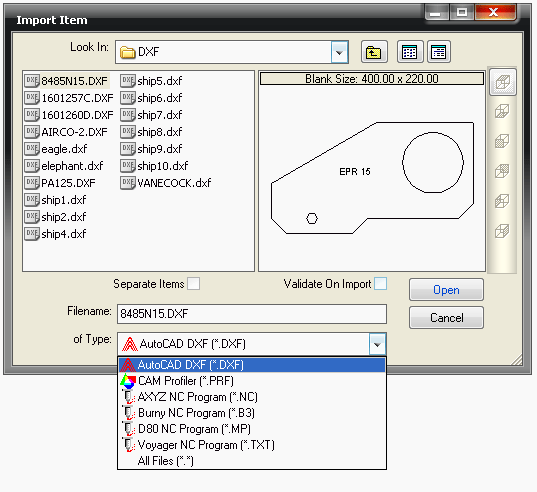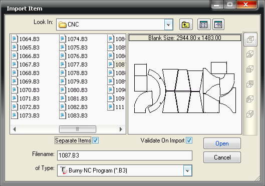 It is possible to import NC Data that has been written to a particular machine into an Item Folder or job. This will allow it to be treated in the same way as a normal part. To display the Import Item dialog.