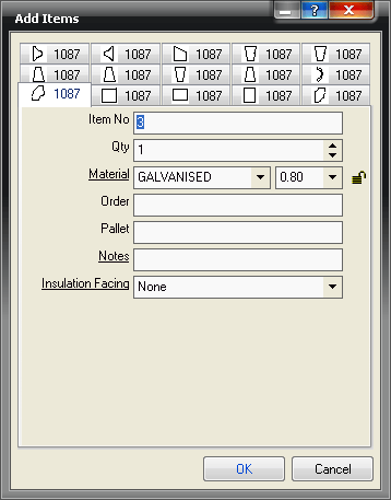 - Clicking Apply will open an " Add Item" window which will allow you to set the Item Quantity, change the material etc.