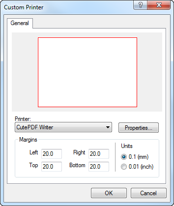 - Select Custom Printer then Properties. The Custom Printer dialog displays.