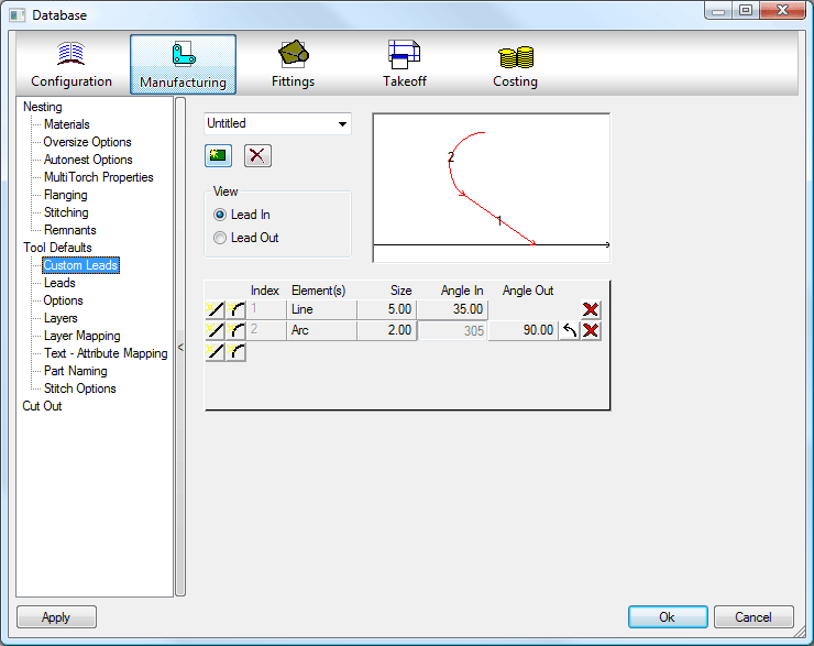 Manufacturing, and select the Custom Leads in the left pane, under Tool Defaults.