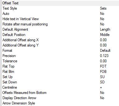 The Offset Text options related to this feature are specified in the database as follows:
