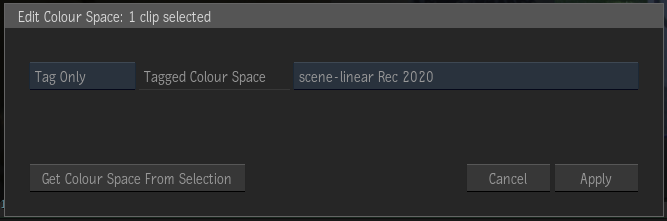 The Edit Colour Space option from the Timeline contextual menu allows you to modify the Pre-processing options of all the currently selected sources. This tool does not affect Sequences, only sources.