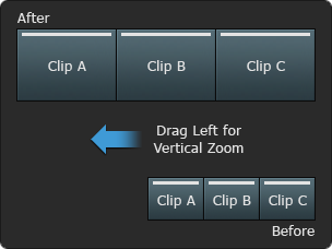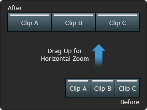 | Collapsed | Only the current frame of each edit sequence. The edit sequence appears in the form of a stack. Shuttle through the sequence by dragging the cursor across the bottom of the frame. |