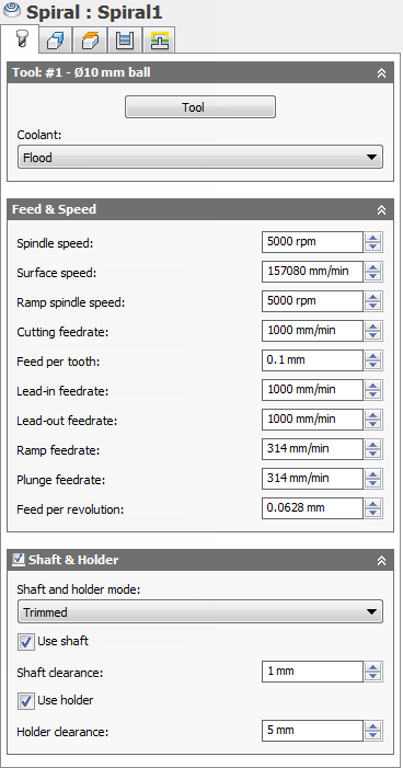 The Spiral Finishing strategy creates a spiral path which is projected down on a surface. It is most useful in round, relatively flat areas.