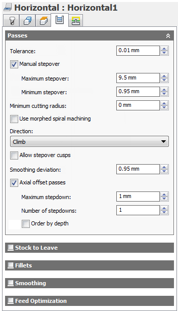 For finishing operations, the default value is 0 mm / 0 in, i.e. no material is left.