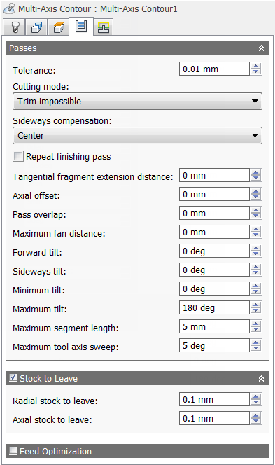 For finishing operations, the default value is 0 mm / 0 in, i.e. no material is left.