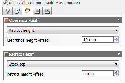 The Clearance height is the first height the tool rapids to on its way to the start of the tool path.