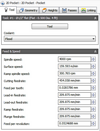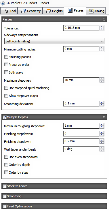 Smoothing works best when the Tolerance (the accuracy with which the original linearized path is generated) is equal to or greater than the Smoothing (line arc fitting) tolerance.