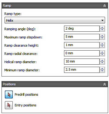 This value should always be smaller than the Helix Ramp Diameter, so the system can calculate a range that fits the available pocket or channel. Smaller diameters can reduce the chip evacuation, create jerking machine motion and can cause tool breakage.