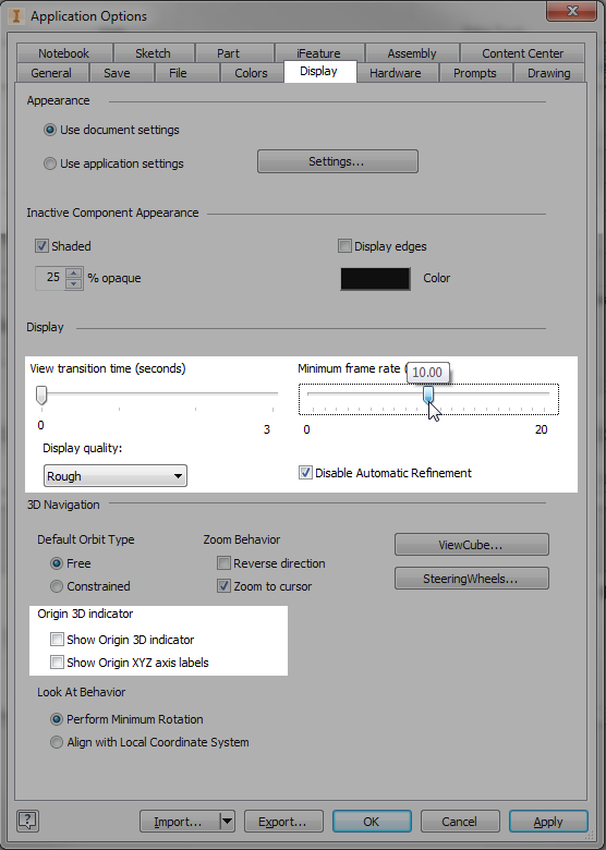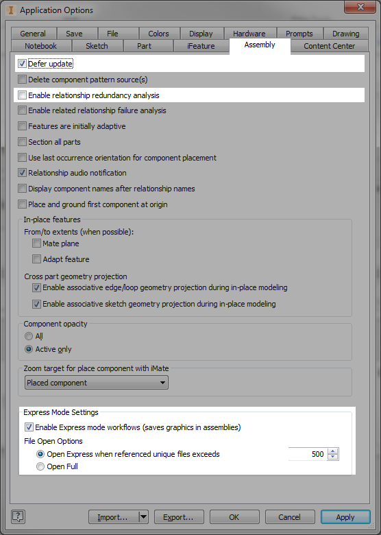 Learn which settings can be optimized for large assembly performance.
