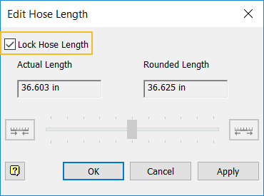 The new option, Lock Hose Length, allows you to calculate an exact sum of hose length. When selected, if components move or shift, this option prevents the length of the hose from changing due to adaptivity.