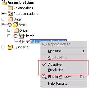 In addition to References in a sketch, the same functionality is available for adaptive work features for copied objects.