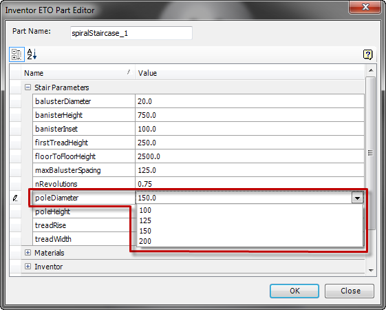 Specifies and displays part parameter values before you add the part to the Intent assembly.