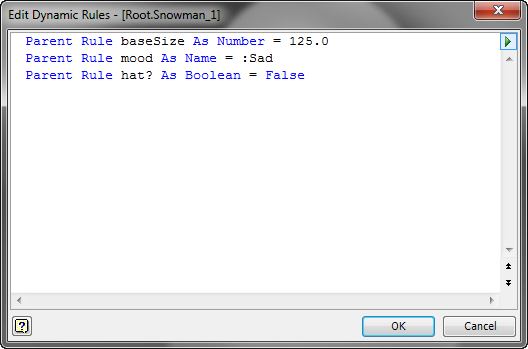 Edit the code of dynamic rules of a particular Intent part node in the Intent Model browser.