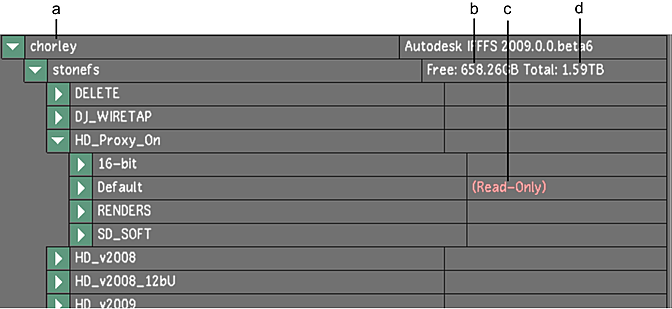 (a) Wiretap server (b) Free space on the file system (c) Read-Only indicator (d) Total space on the file system