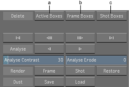 (a) Active boxes button (b) Frame boxes button (c) Shot boxes button