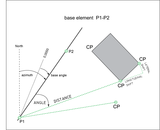 Use the Polar Calculation function for polar surveying. The base element is either represented by an existing line or it can be defined by using two points which can lie aside.