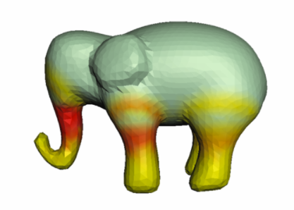 The Strength tool predicts and identifies regions of low structural strength that might be prone to breaking. It does so by computing a number of cross-sections of the model, and performing some analysis based on simulated forces at each of those cross-sections. Weak areas are rendered in red, stronger areas in green.