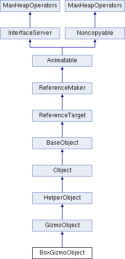 Inheritance diagram for BoxGizmoObject:Public Member Functions | |