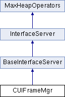 This object controls the overall operation of the individual CUI Frames (the name given to the windows that contain toolbars, menus, the command panel, etc.). There is one instance of this CUIFrameMgr class (obtained by calling the global function GetCUIFrameMgr()). Methods of this class are available to do things like get pointers to button and status controls, and bring up the standard toolbar right click menu .