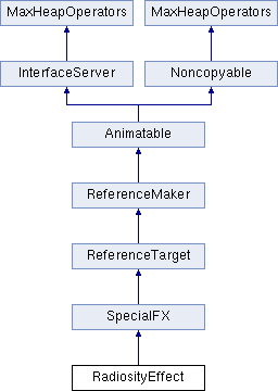 The class provides the interfaces for creating Advanced Lighting plug-ins in 3ds Max. RadiosityEffect plug-ins are controlled through the Advanced Lighting dialog from the render menu.